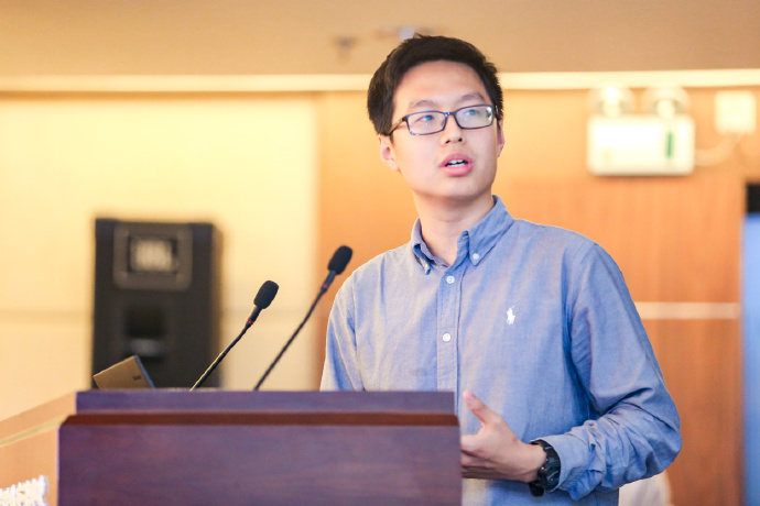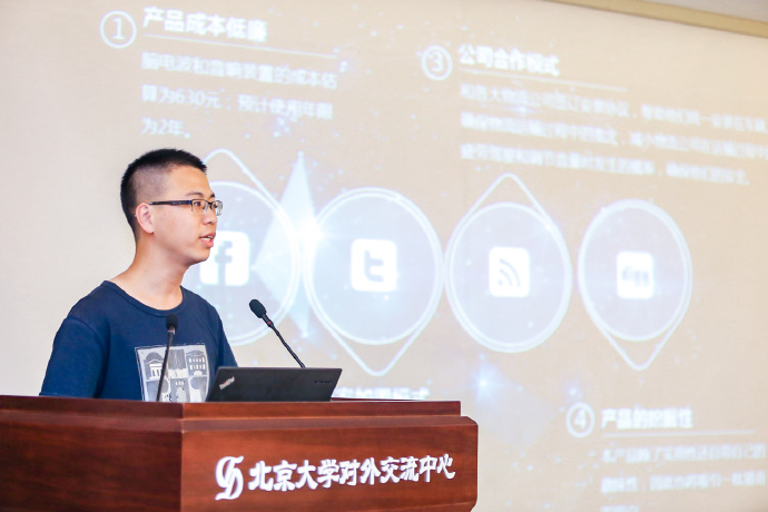 (Wang Yizhong, a postgraduate student of Peking University, presents his project)