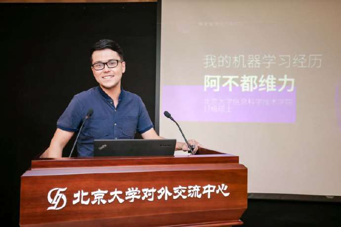 (Abuduweili (transliteration), a student from the School of Electronics Engineering and Computer Science, Peking University, presents his project)