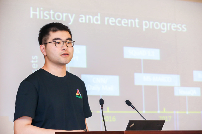 (Zhu Hao, a student from Tsinghua University, introduces the application of natural language processing.)