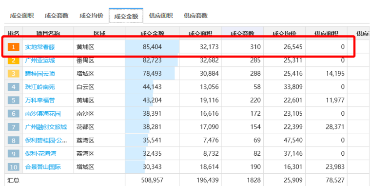 图:广州3月份新房成交金额TOP10(数据来源:克而瑞)