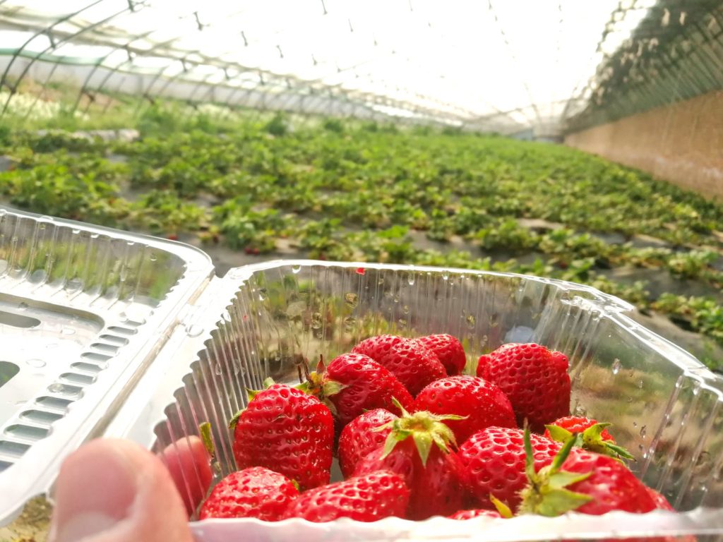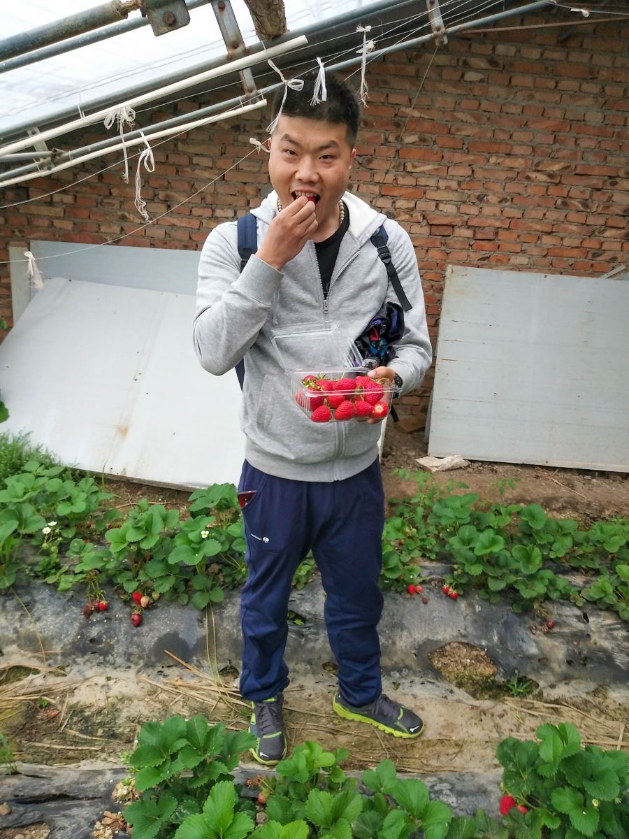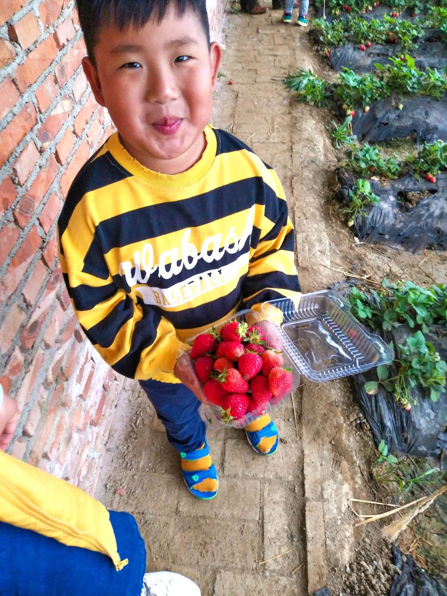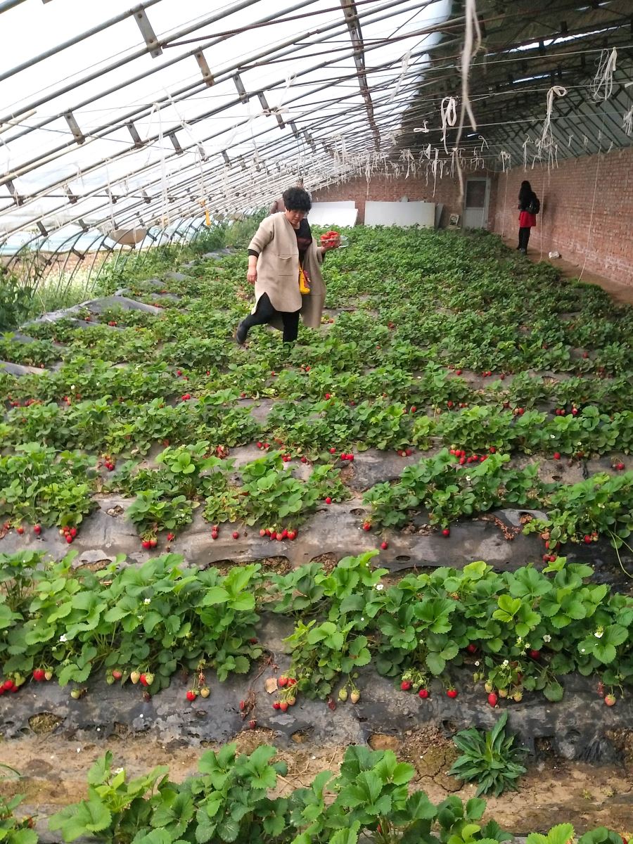 来到采摘地区小朋友们看到熟透的草莓,按捺不住激动的心情,立刻带着大人冲进了草莓园。