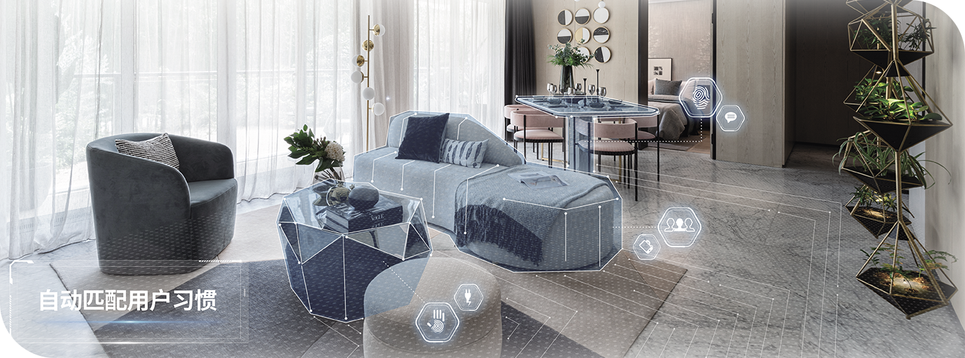当用户在回家的路上或驾车进入小区,即可远程开启回家模式,回家后灯光、窗帘、空调、电视等已开启至预设模式;晚餐后想看电影,说一声“影音模式”,灯光、家庭影院等将自动切换;当早晨出门时,说一声“我要出门了”,即可关闭家中智能家居设备,并自动布防和开启异物闯入报警功能,通过hachi app更可远程查看家中情况。